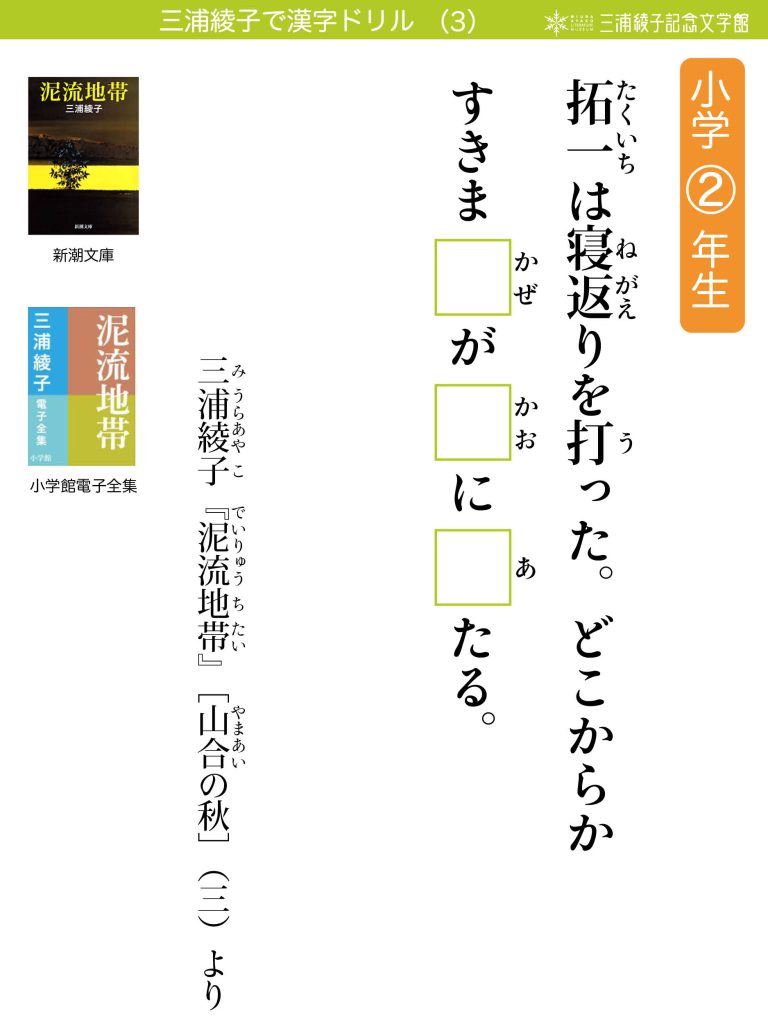 拓一は寝返りを打った。どこからかすきま(かぜ)が(かお)に(あ)たる。